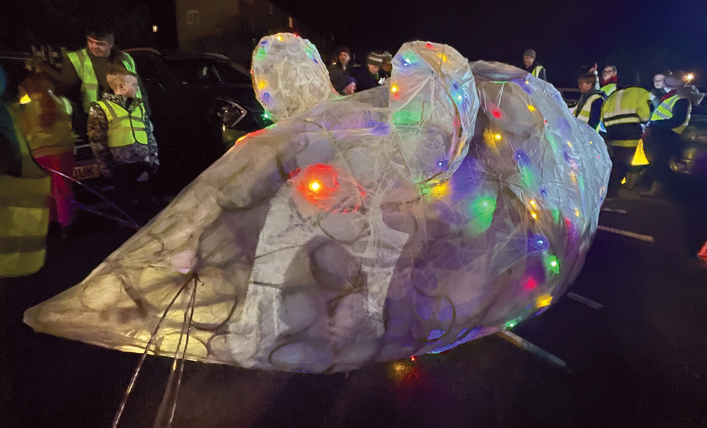 About 20 years ago, the school art club applied for a grant to make lanterns and learned how to work with willow. Following this, the bonfire committee suggested re-establishing the old Eyam custom of rat burning, and the giant willow rat we know today was born. In the weeks leading up to the bonfire, we build the rat after school using willow from a tree in the school field and papier-mâché. We also make the lanterns for the parade. The excitement grows as the children spend several weeks crafting the rat.